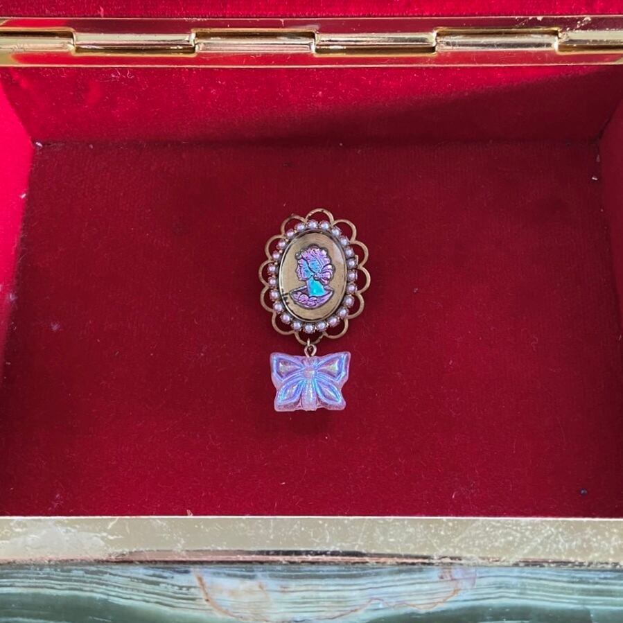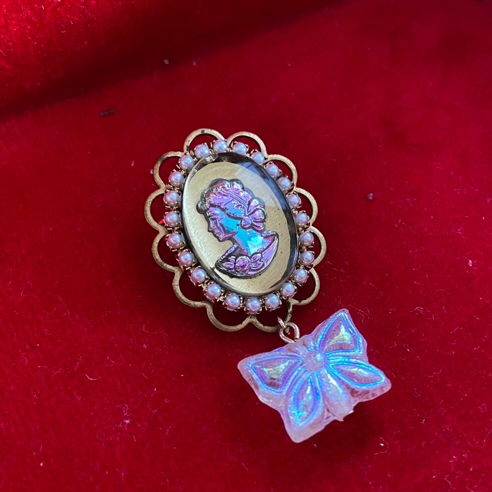 ピンクがかったパープルのインタリオは、角度によって表情を変えます。