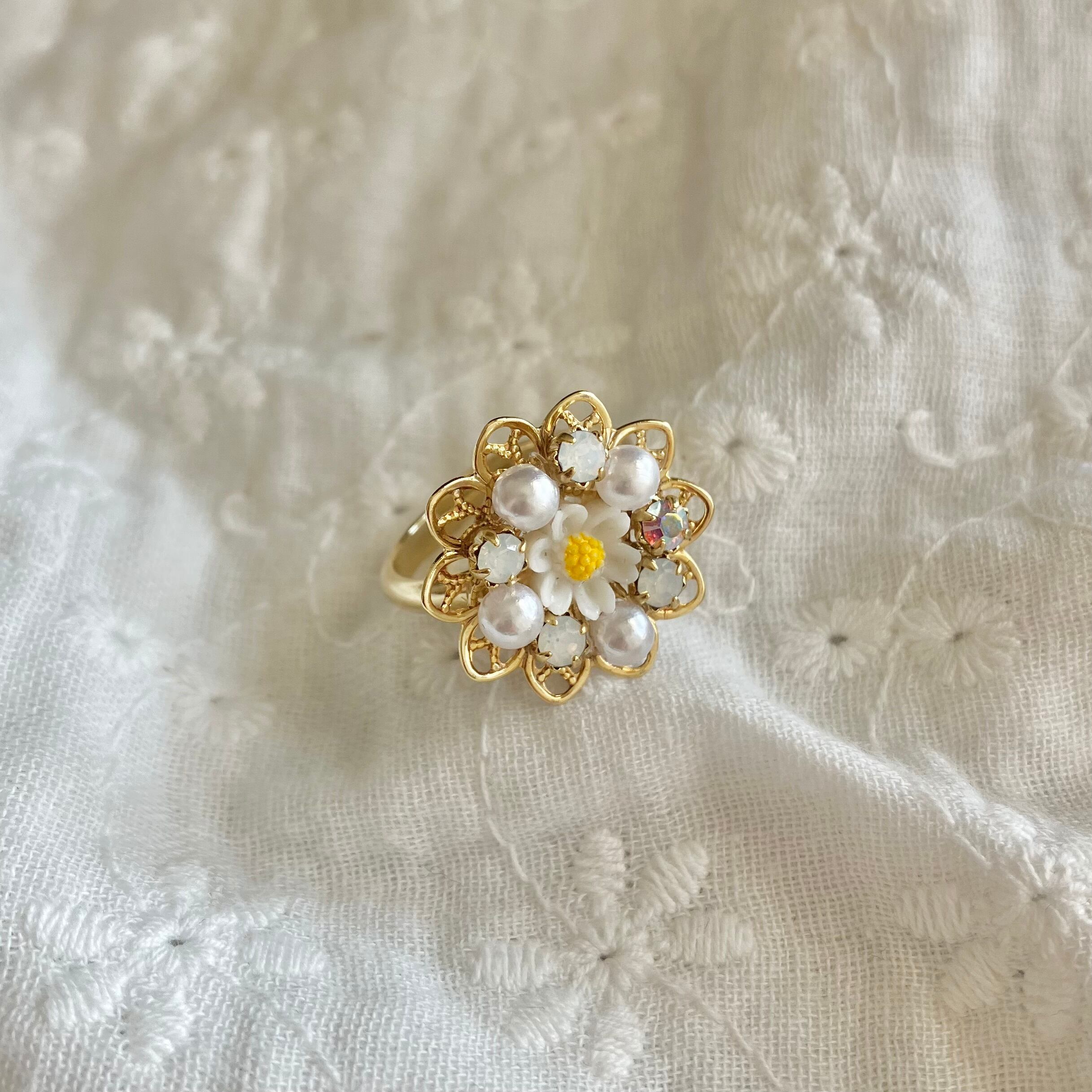 そのデイジーの周りには、2種類のストーンとビーズを纏わせました。